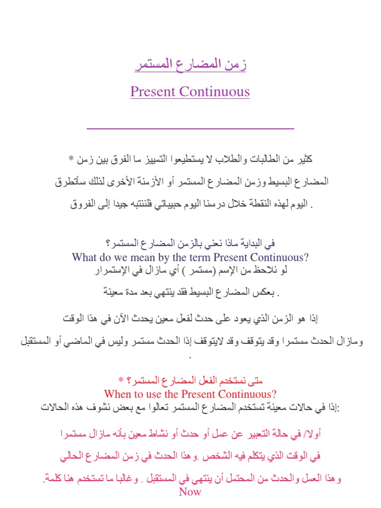 زمن المضارع المستمر Pdf