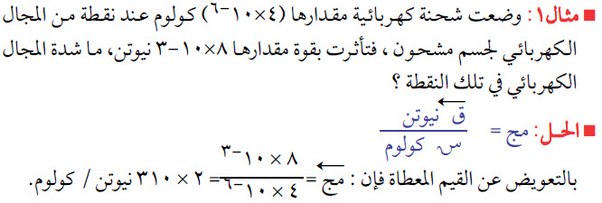 المجال الكهربائي وتطبيقاته في الفيزياء للصف الثاني عشر الفصل الاول 2017 2018
