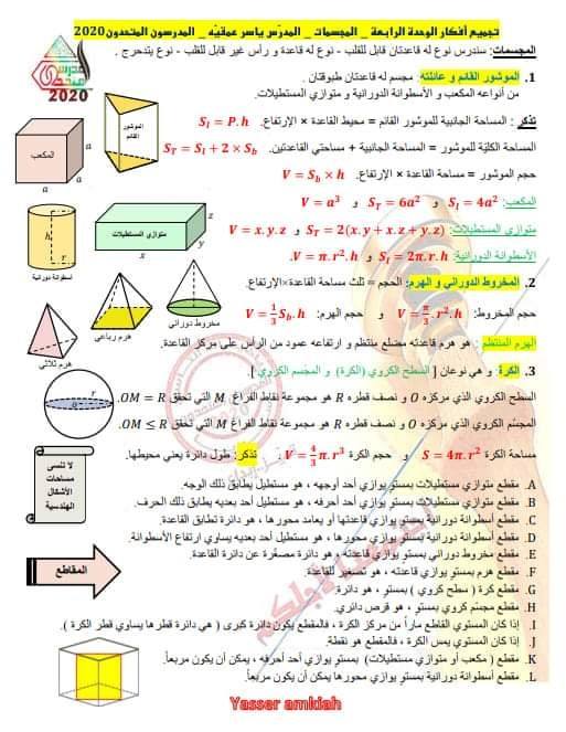 فى ورقة واحدة تلخيص لكل الاشكال الهندسية والمجسمات لطلاب ابتدائى فى ورقة ممتازة