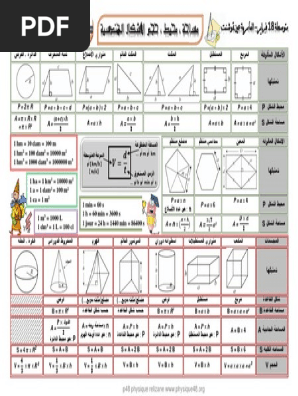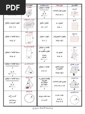 القوانين الهندسية للأشكال المستوية و المجسمات Pdf
