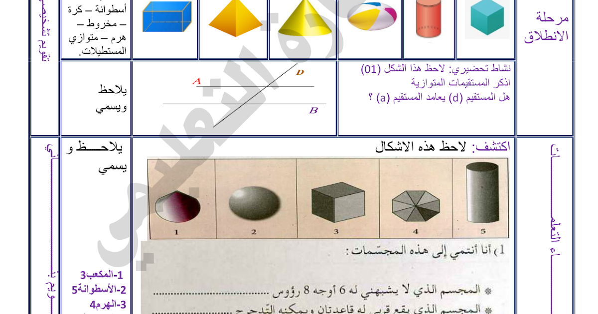 الاهداف 1 معرفة المجسمات والاشكال الاشكال الهندسية Facebook