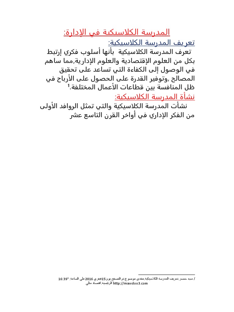 بحث حول الادارة الكلاسيكية