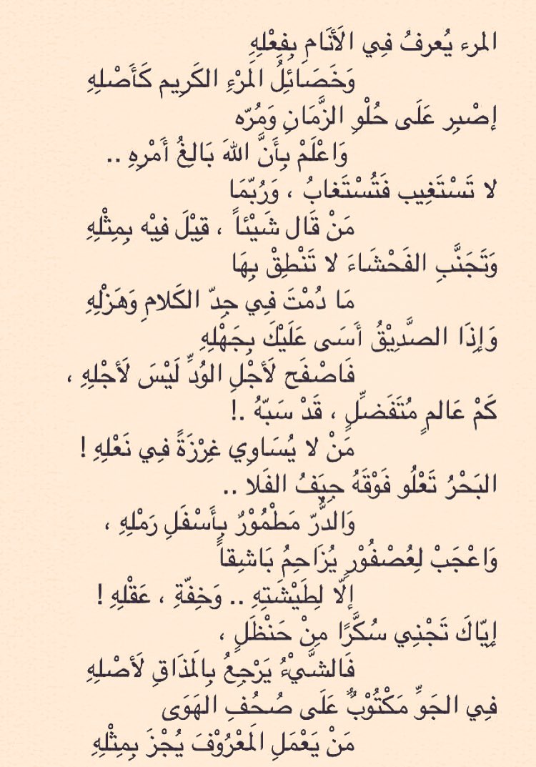 وليد عبدالله الغانم On Twitter قصيدة رائعة تنسب للامام الشافعي رحمه الله وبدايتها المرء يعرف في الأنام بفعله و خصائل المرء الكريم كأصله
