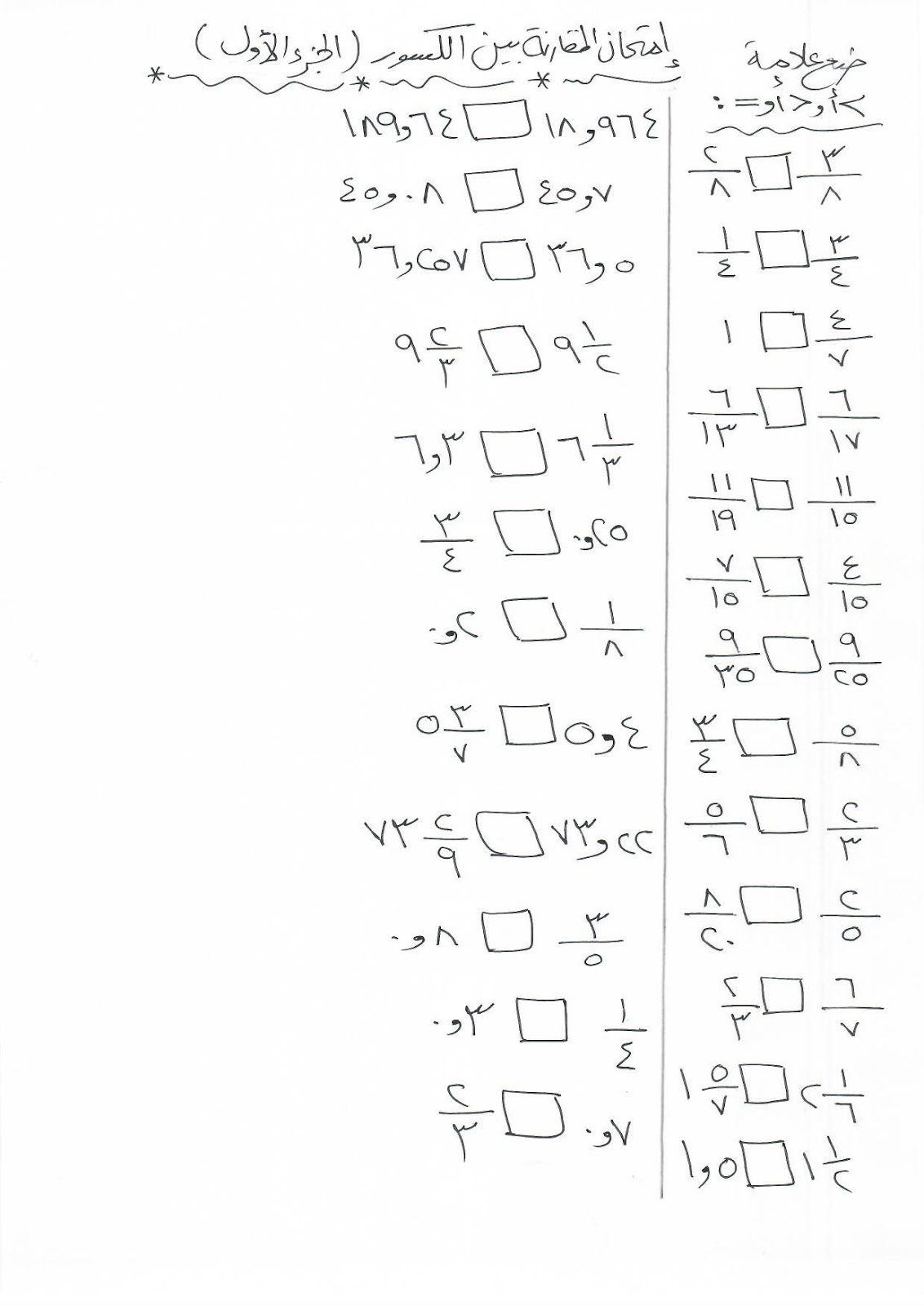 المقارنة بين الكسور الجزء الاول للصف الخامس الابتدائي مدونة ميس سلوى حامد