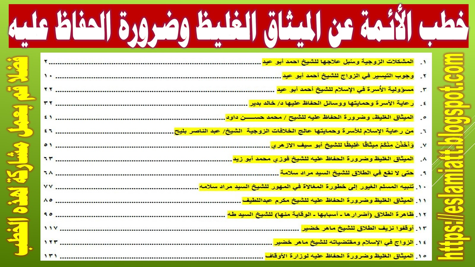 خطب الأئمة عن الميثاق الغليظ وضرورة الحفاظ عليه الإرشادات الإسلامية فى الخطب المنبرية