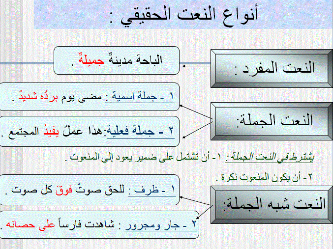 النعت الحقيقي ونوع المطابقة