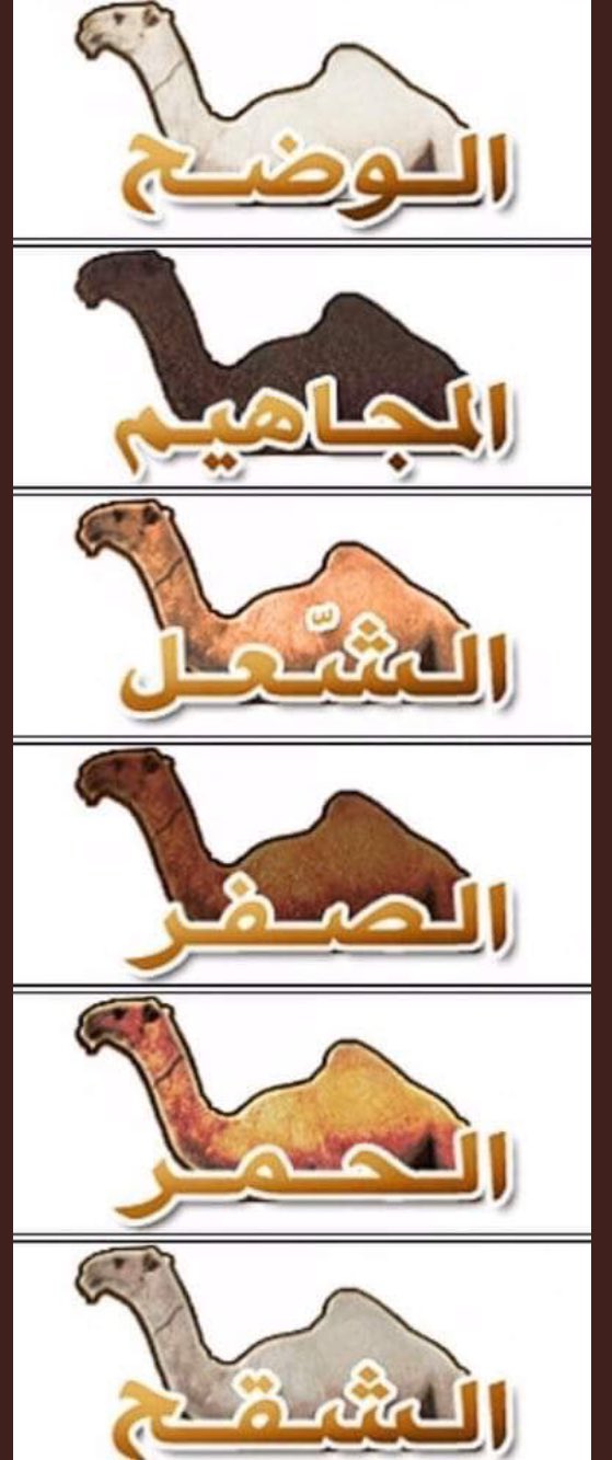 تاريخنا العظيم On Twitter ألوان الإبل المجاهيم الإبل ذات اللون الأسود بدرجات مختلفة المغاتير الإبل ذات الألوان الفاتحة الوضح الإبل ذات اللون الأبيض الناصع الشقح الإبل الأقل بياضا من الوضح الصفر الإبل