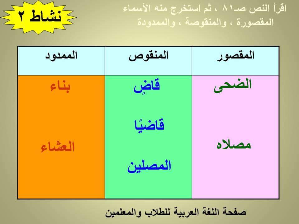 المقصور والمنقوص والممدود 2 الاسم اللغة العربية للطلاب والمعلمين Facebook
