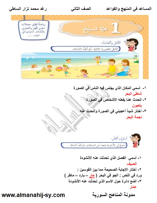 شرح وحل انشودة هيا نسبح في اللغة العربية للصف الثاني الفصل الاول