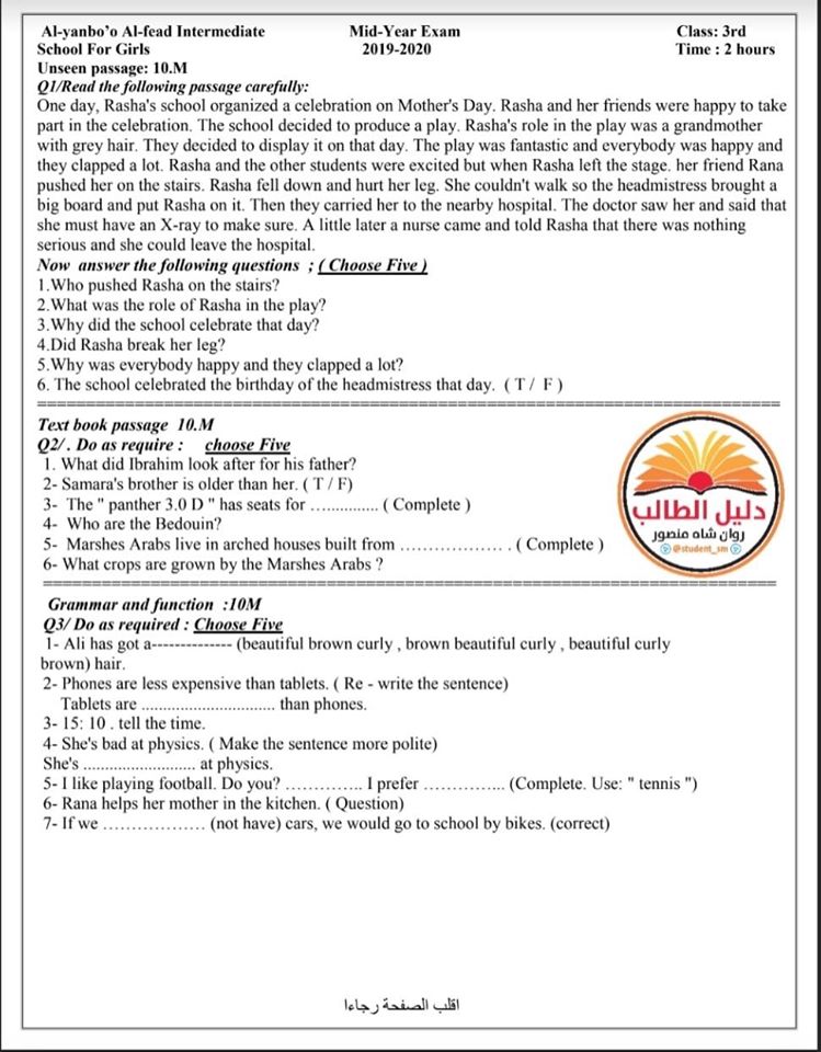 اسئلة نصف السنة انكليزي ثالث متوسط المنهج الجديد 2017 Facebook