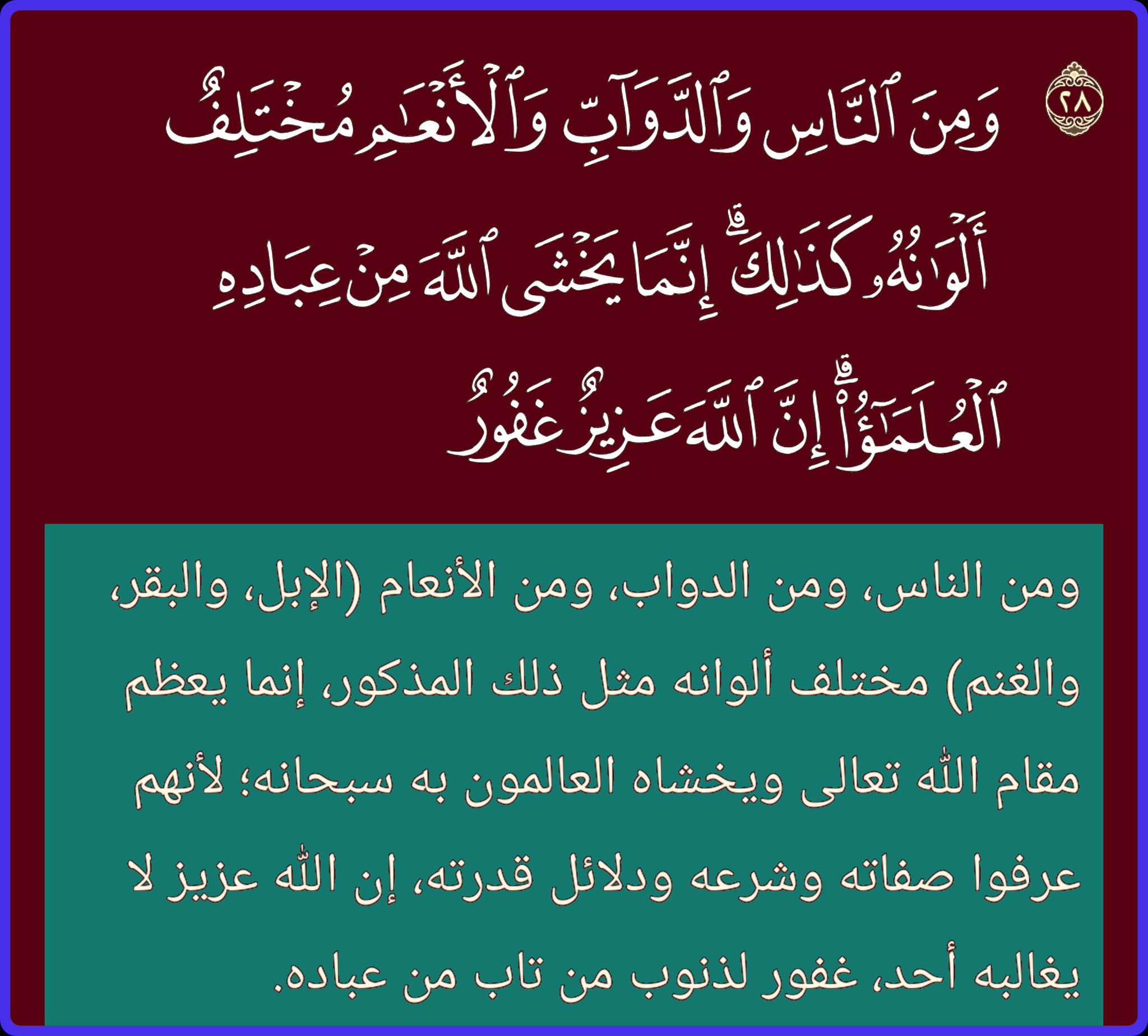 O Xrhsths الفاعوري Sto Twitter قال الله تعالى ومن الناس والدواب والأنعام مختلف ألوانه كذلك إنما يخشى الله من عباده العلماء إن الله عزيز غفور من لا يعظم مقام الله تعالى تجد