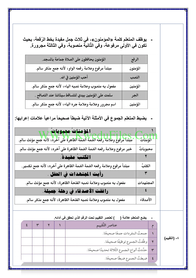 انواع الجموع الصف الثامن لغة عربية الفصل الثاني ملفات الكويت التعليمية