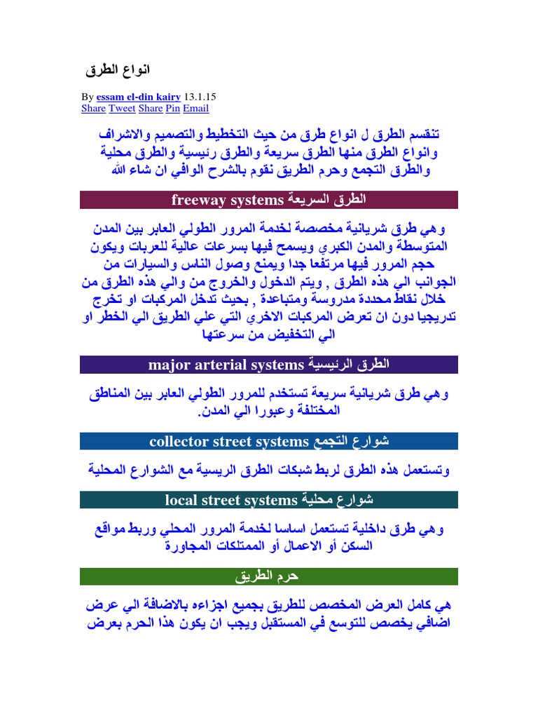 م عبدالعزيز الراضي On Twitter انواع الطرق وخصائصها والسرعات المقترحه Http T Co T8isd9v0y1