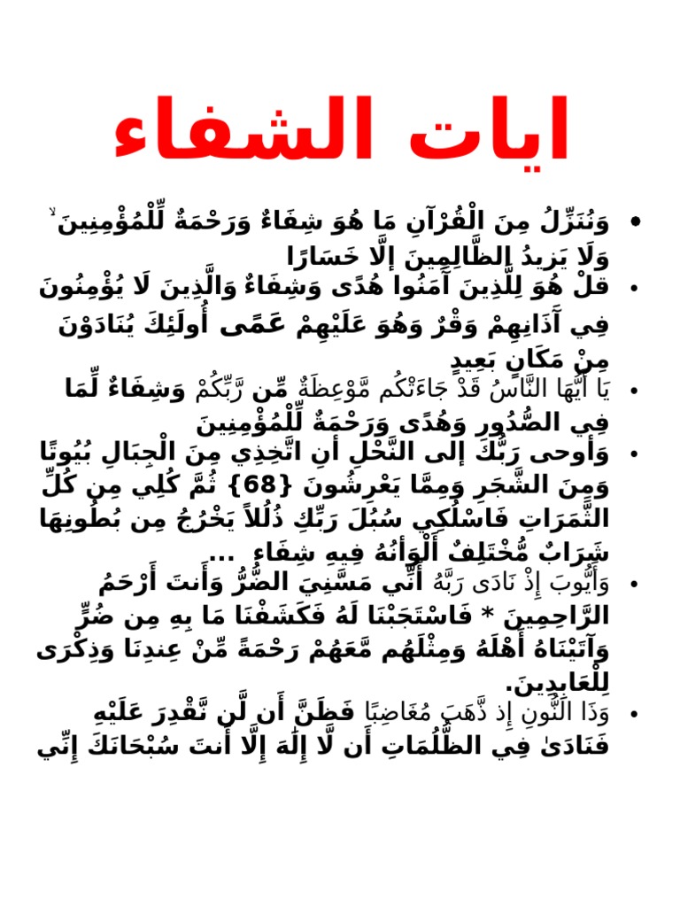 الذكر الثمين Sur Twitter هل هناك آيات شافية في القرآن الكريم آيات الشفاء في القرآن الكريم ستة وهي آيات ذ كرت فيها كلمة شفاء وما اشت ق منها وت قرأ على المريض راجيا
