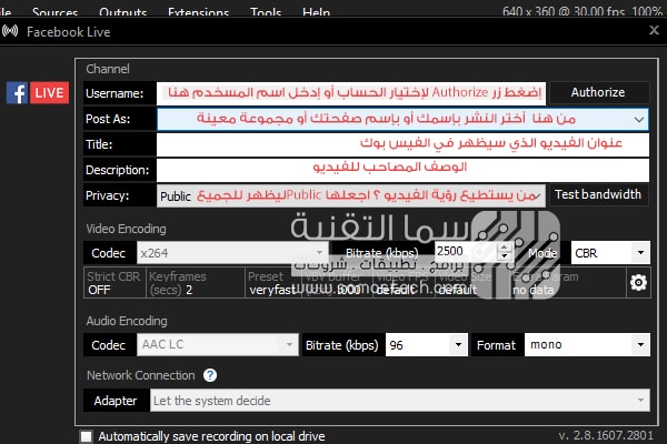 تحميل وشرح برنامج Obs Studio المجاني لعمل بث مباشر من الكمبيوتر للفيس بوك ويوتيوب وغيره سما التقنية