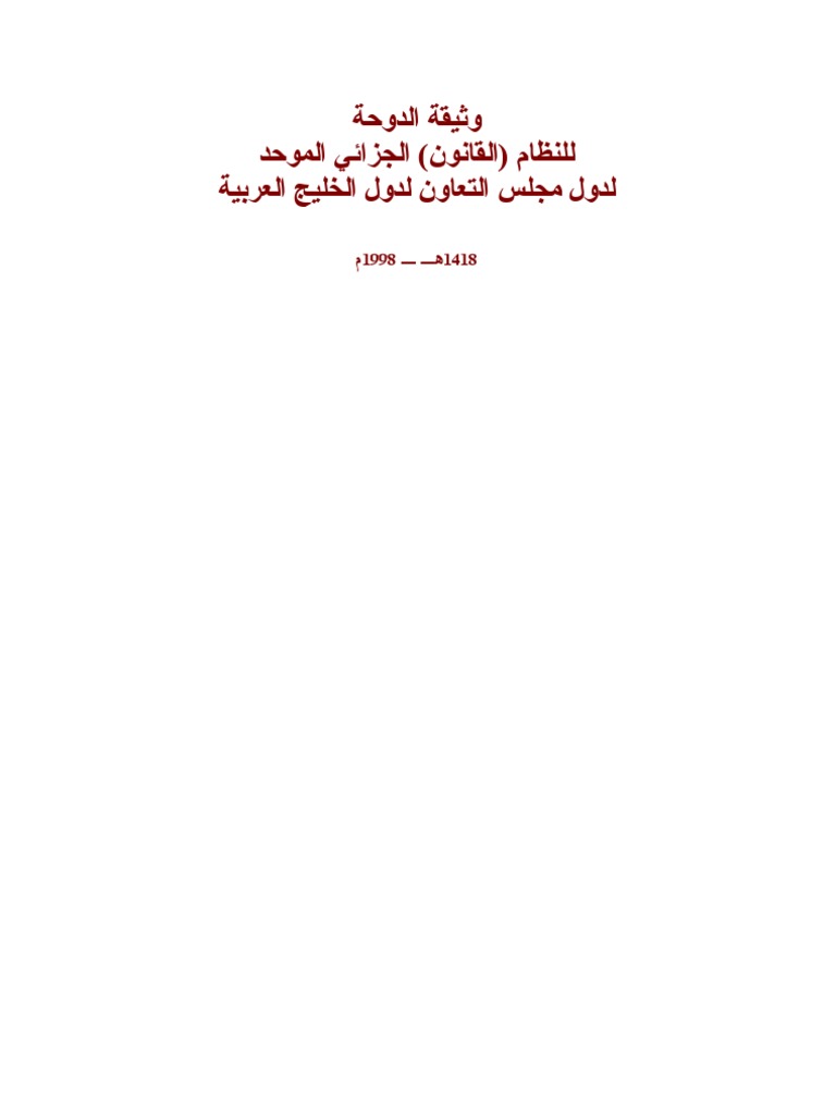 وثيقة الدوحة للنظام القانون الجزائي الموحد لدول مجلس التعاون 1998