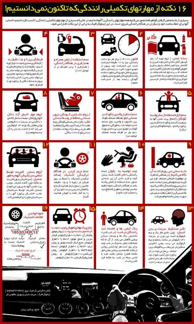 اینفوگرافیک ۱۶ نکته از مهارت های تکمیلی رانندگی تابناک