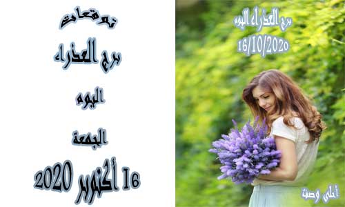 حظك اليوم برج العذراء الجمعة 2 أكتوبر 2020اليوم الجمعة 2 أكتوبر 2020 01 30 صـ منذ 3 دقائق